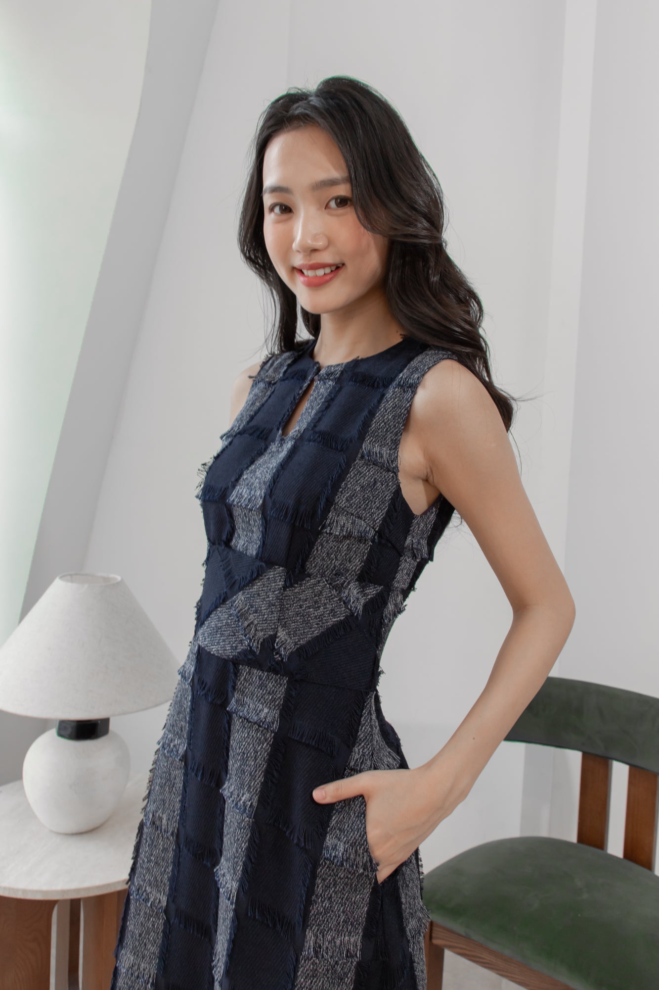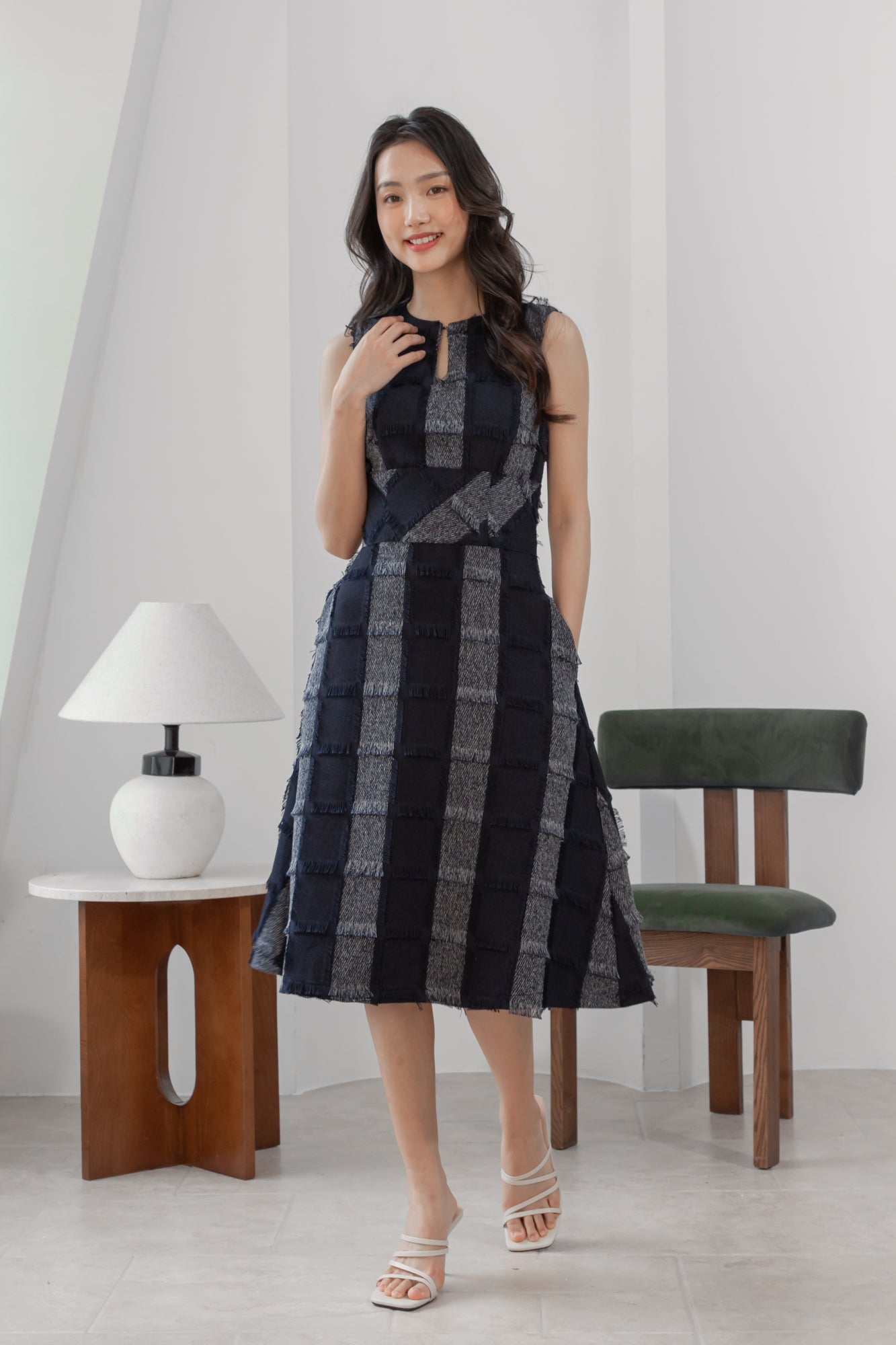 Gavin checked navy midi dress