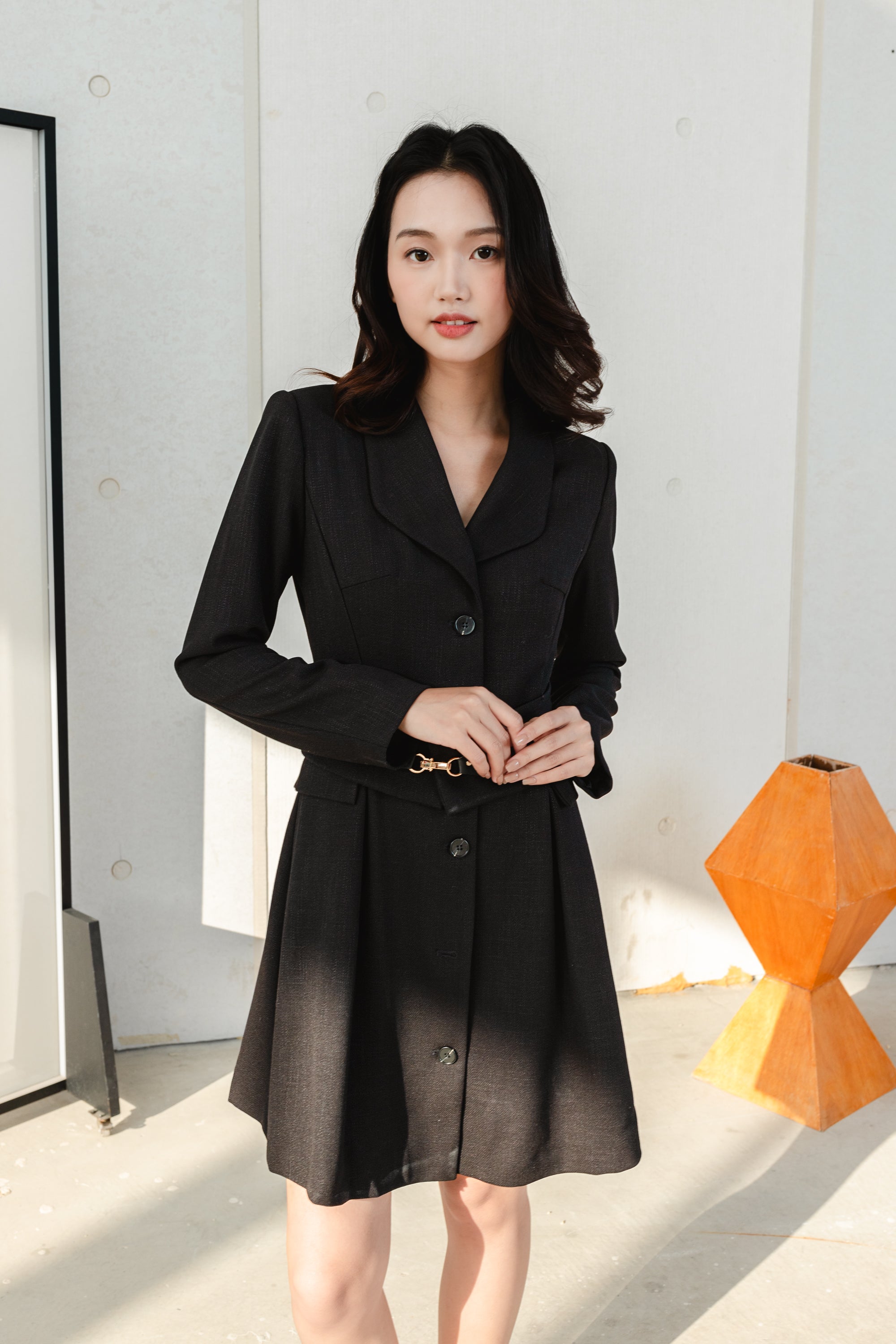 Gaia gold buckel blazer dress