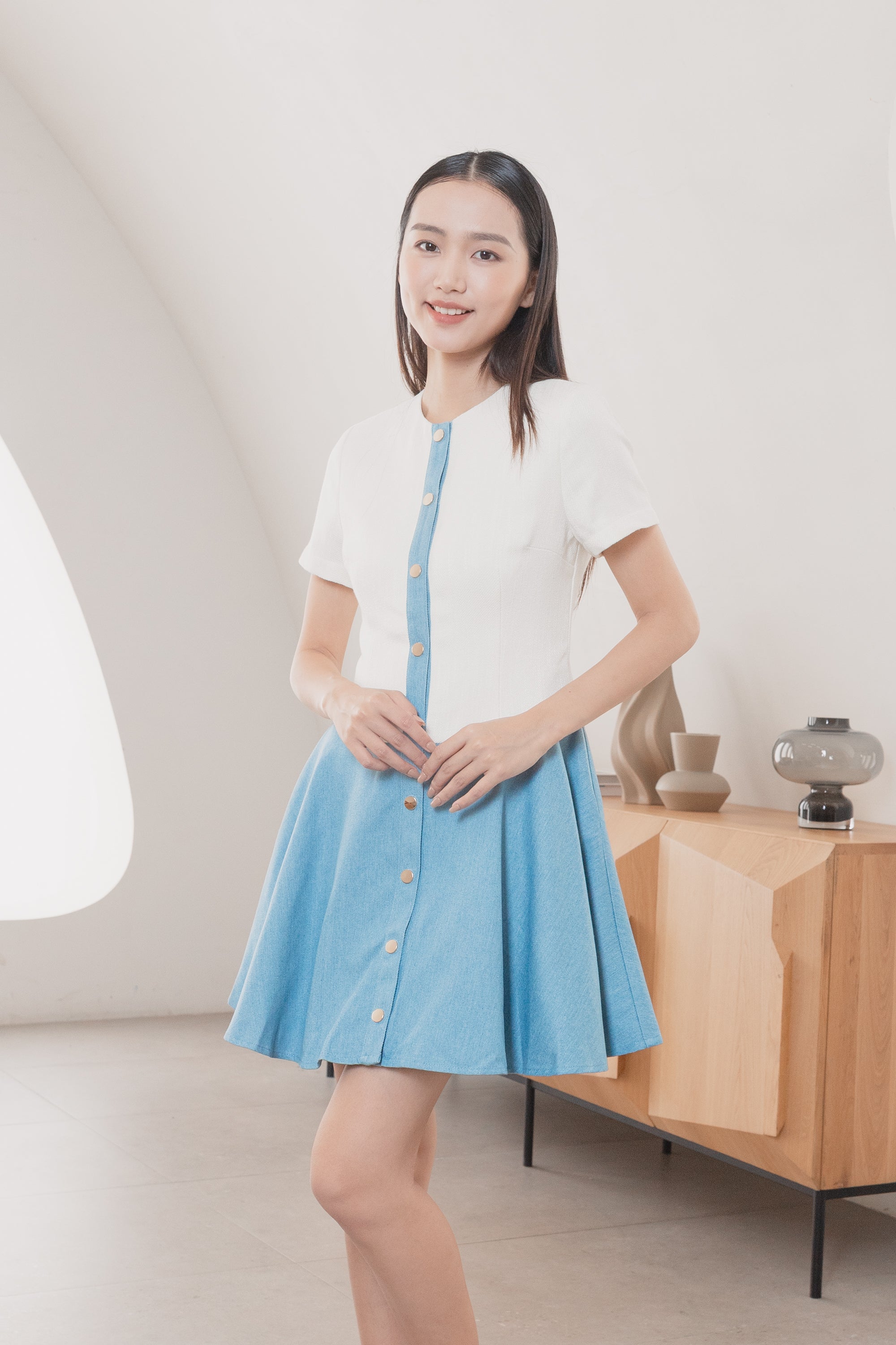 Gaia denim color block dress