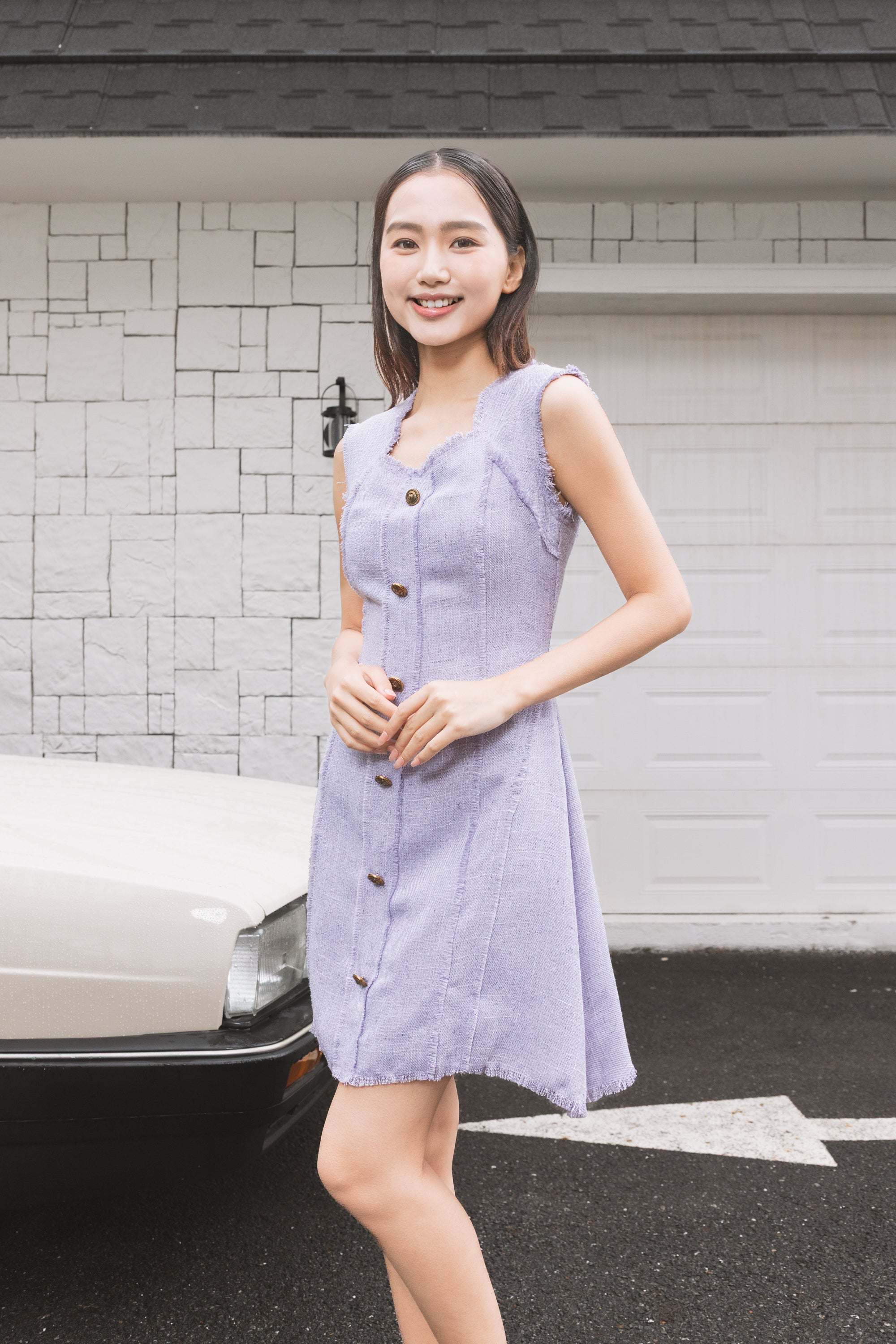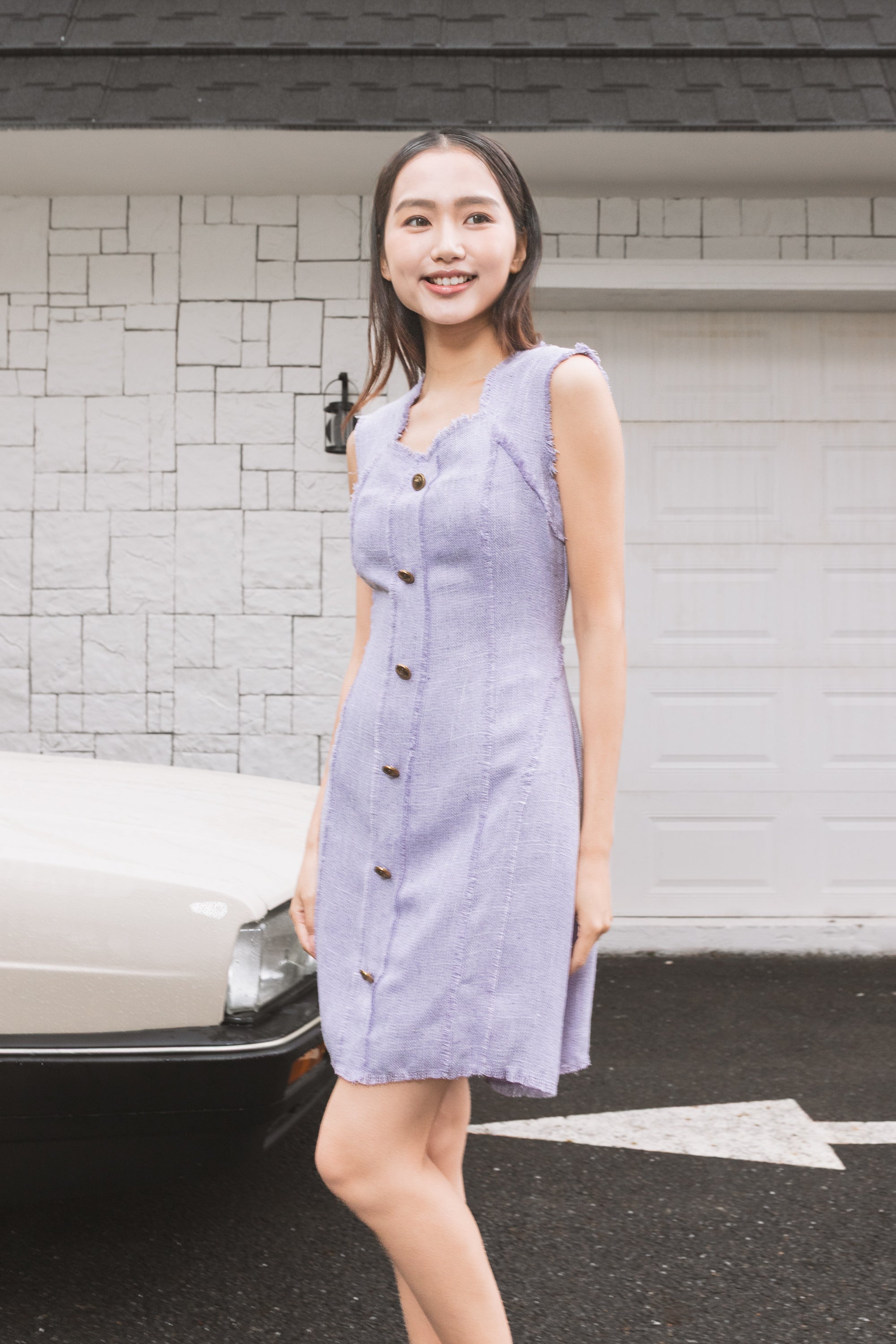 Fable trimmed buttons tweed dress