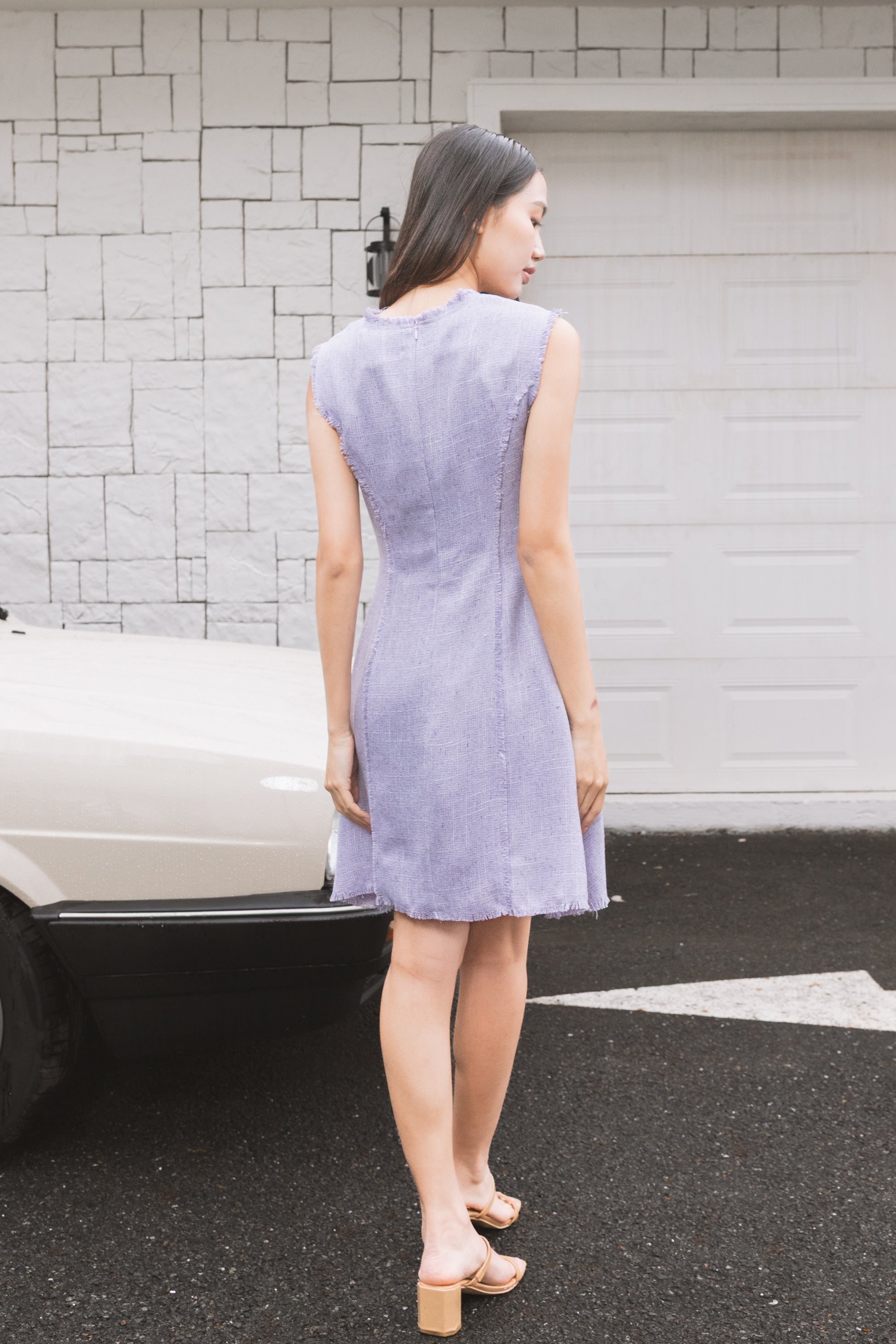Gaia ruffle armhole tweed dress