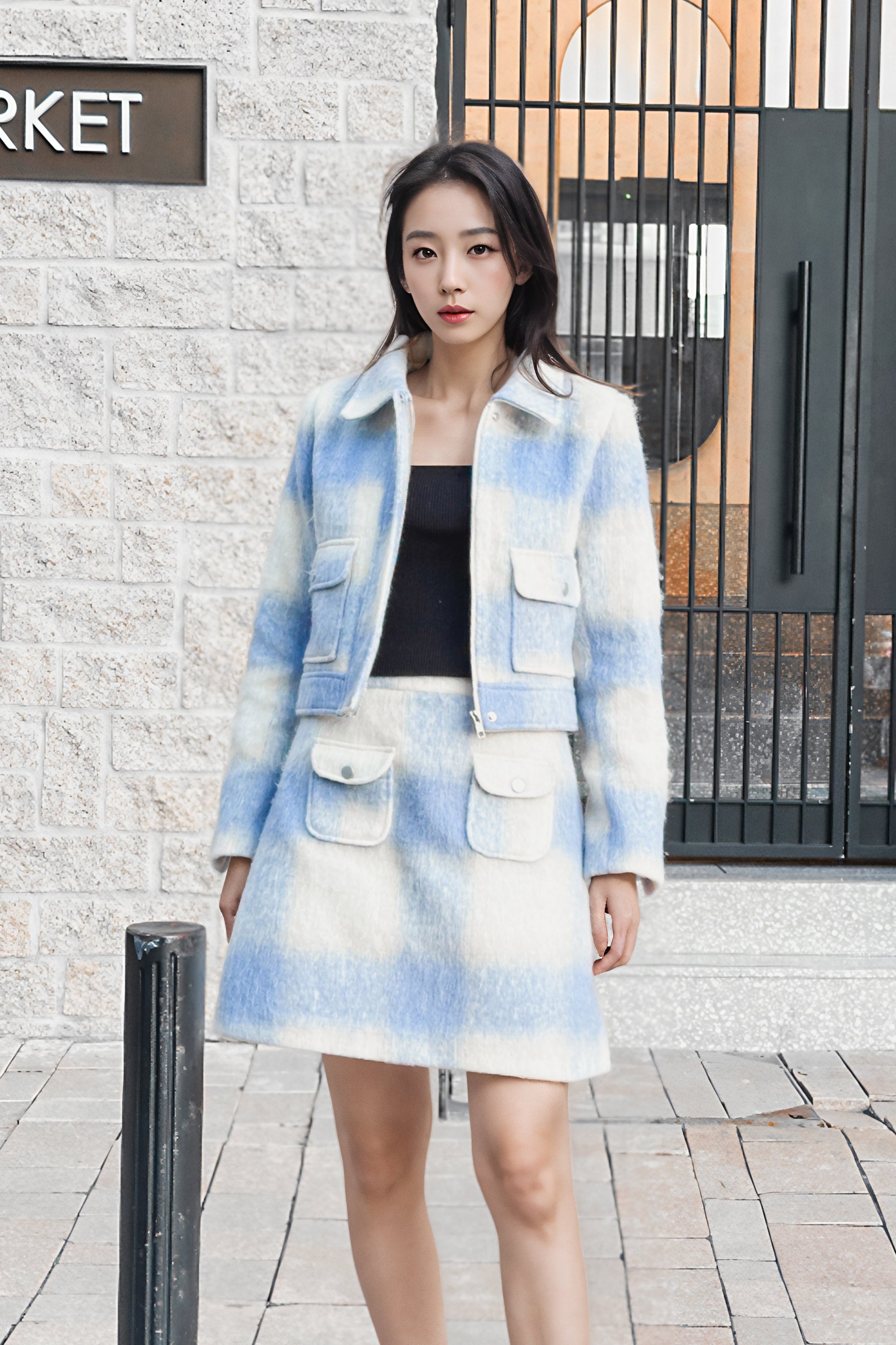 Elena patched pockets check skirt