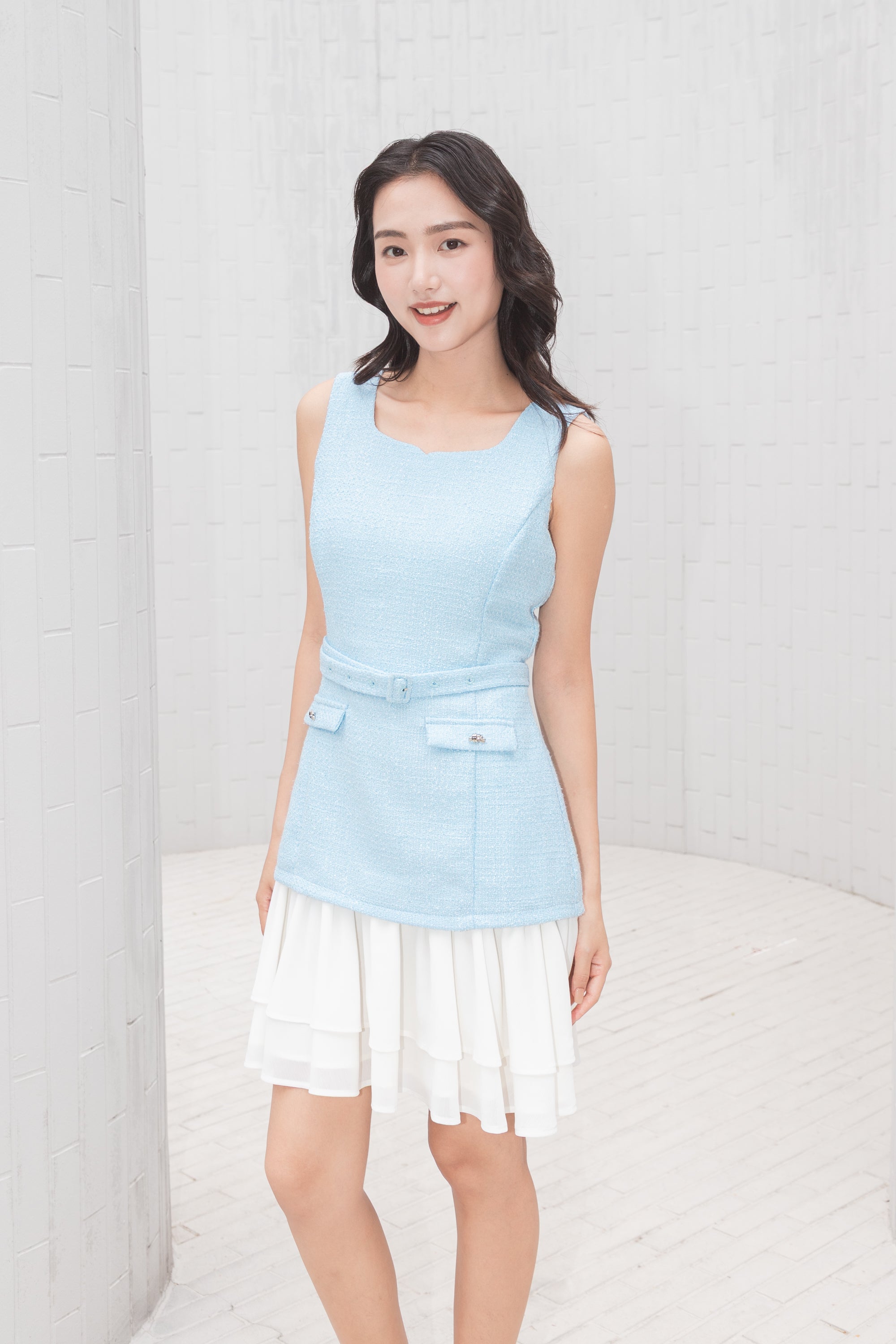Bianca chiffon layered tweed dress