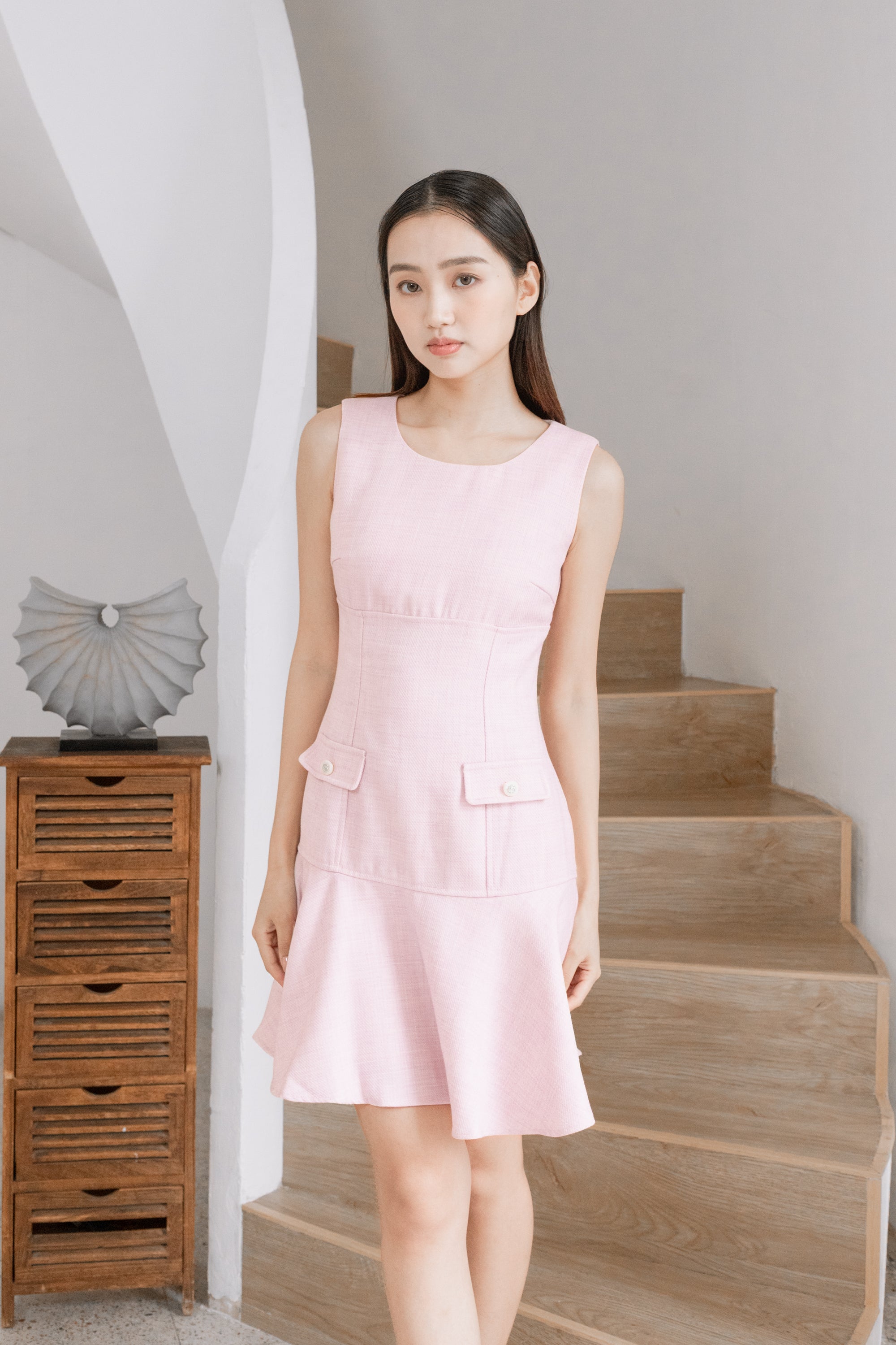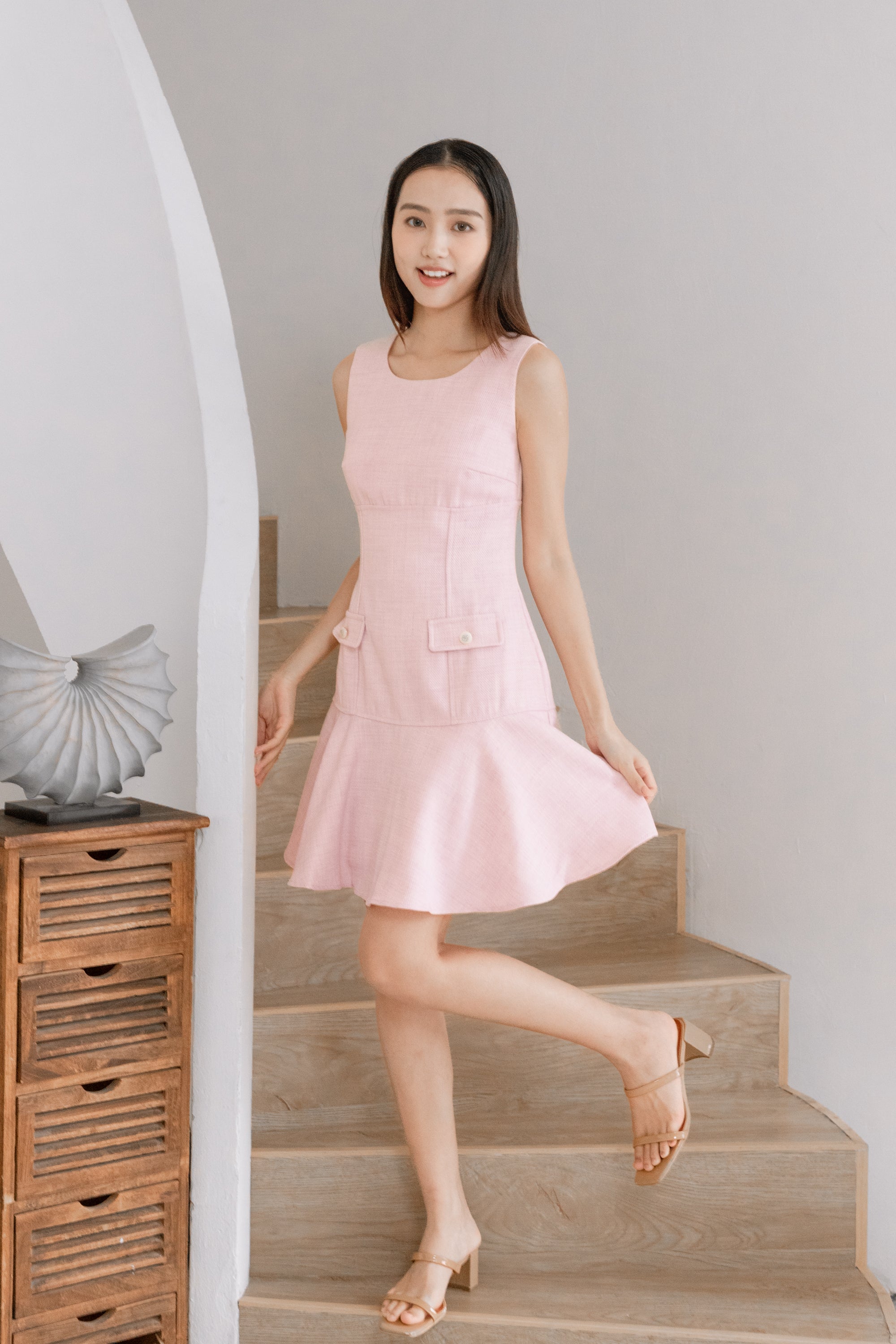 Gaia square neck ruffle hem pink dress