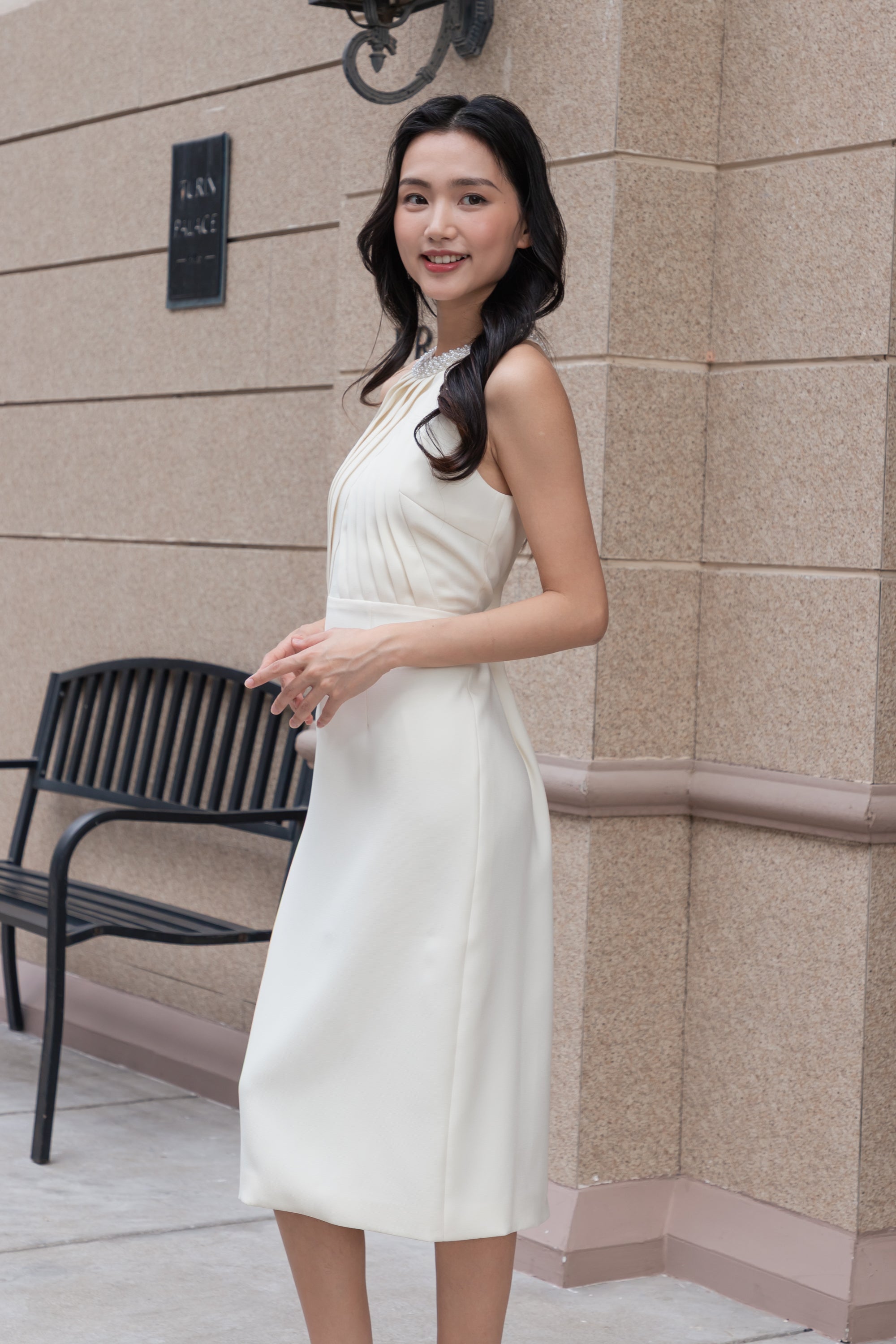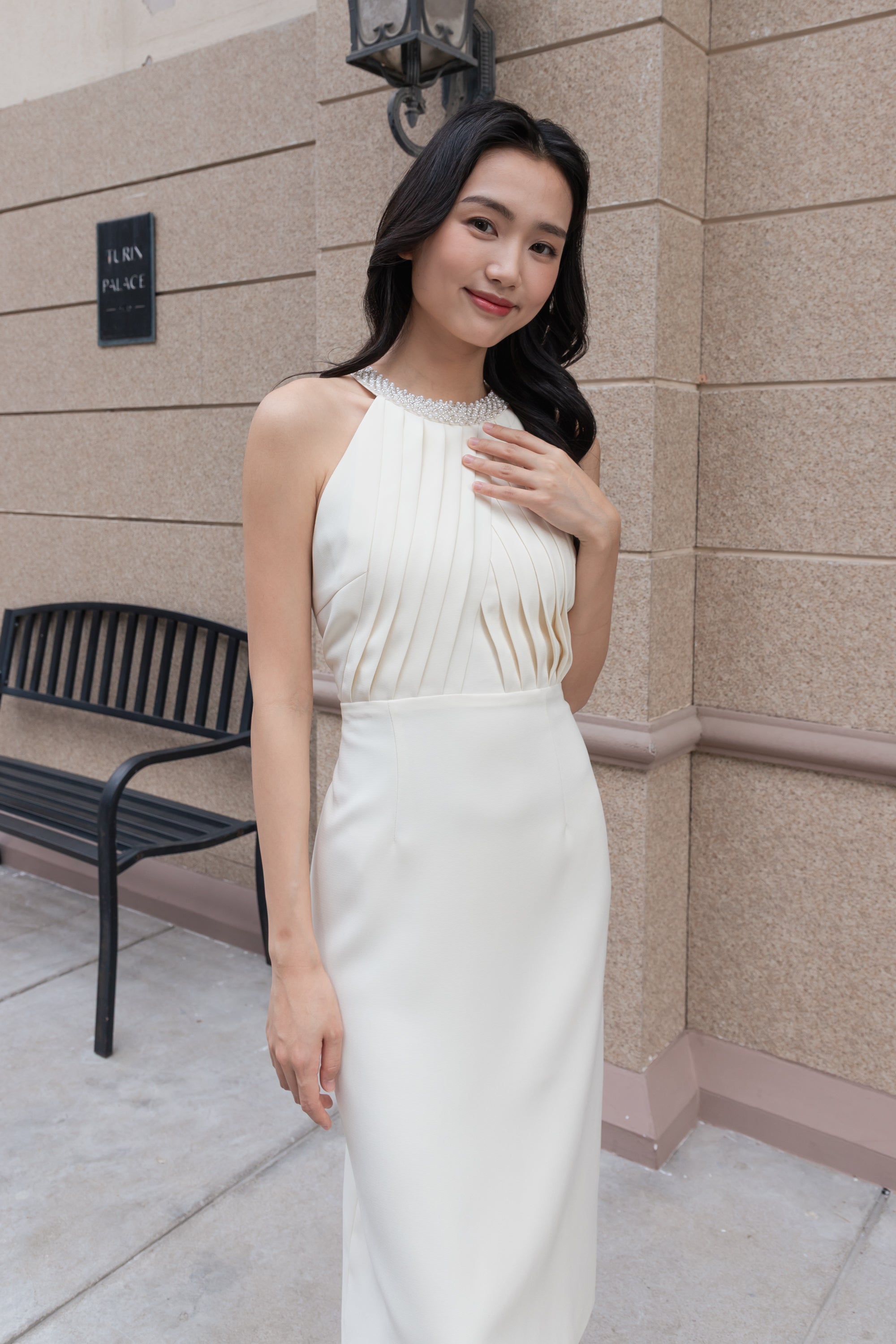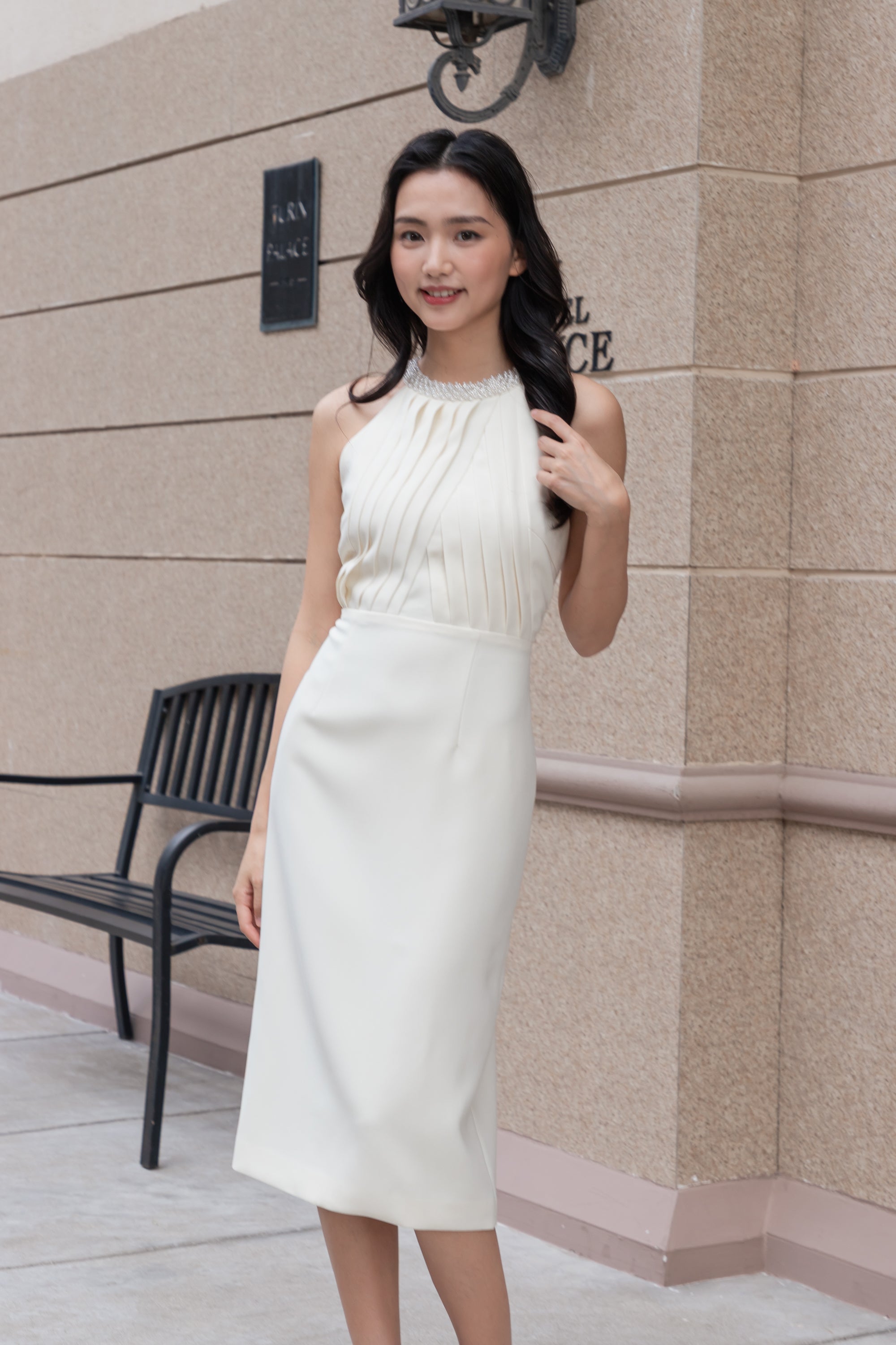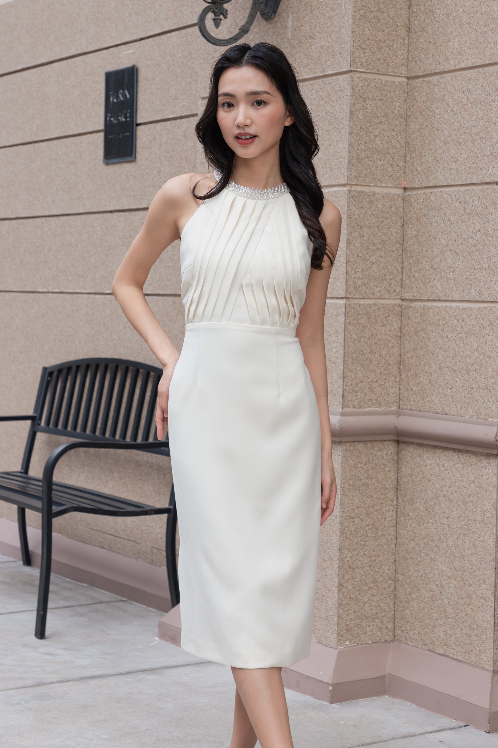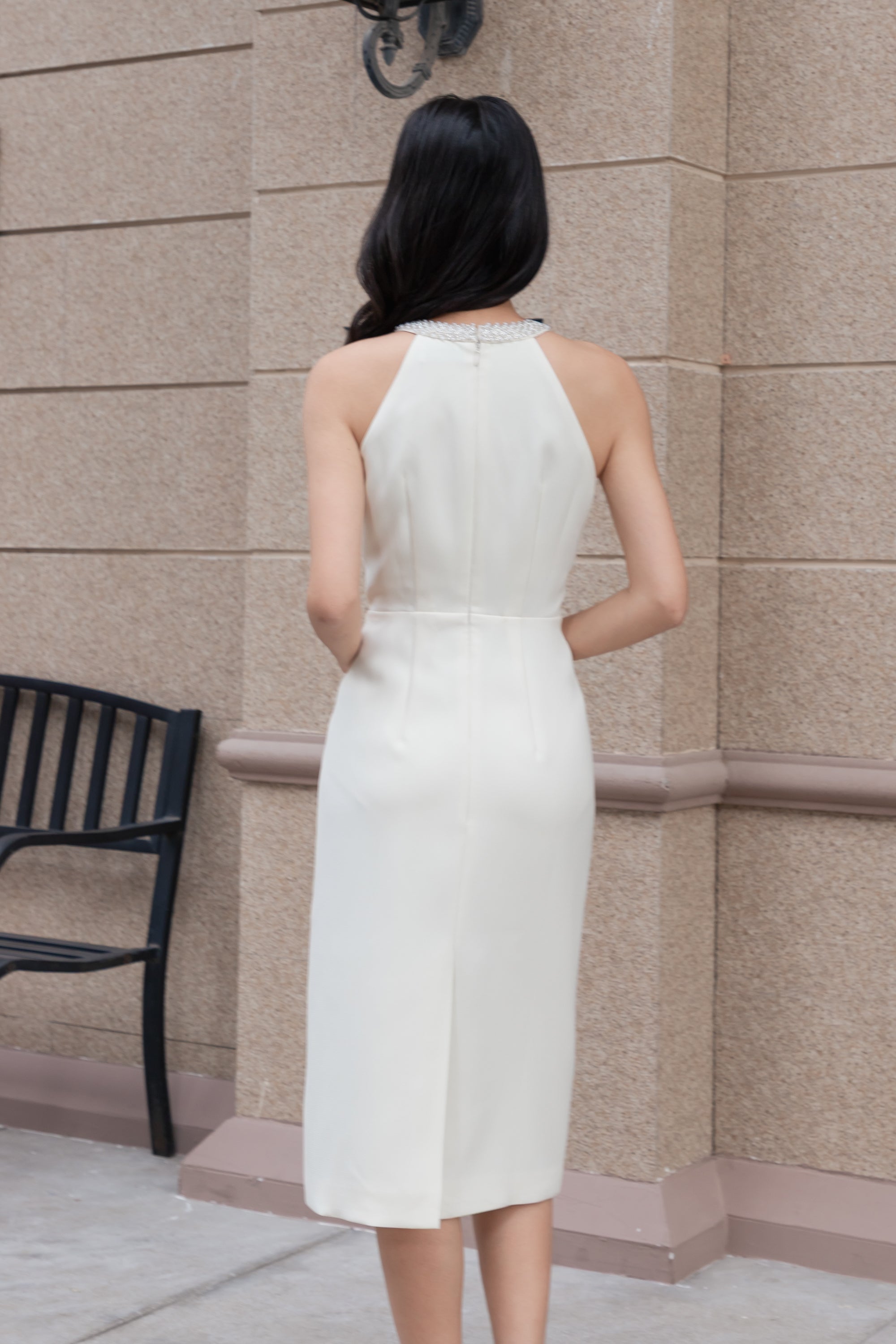 Anna beaded neckline midi dress