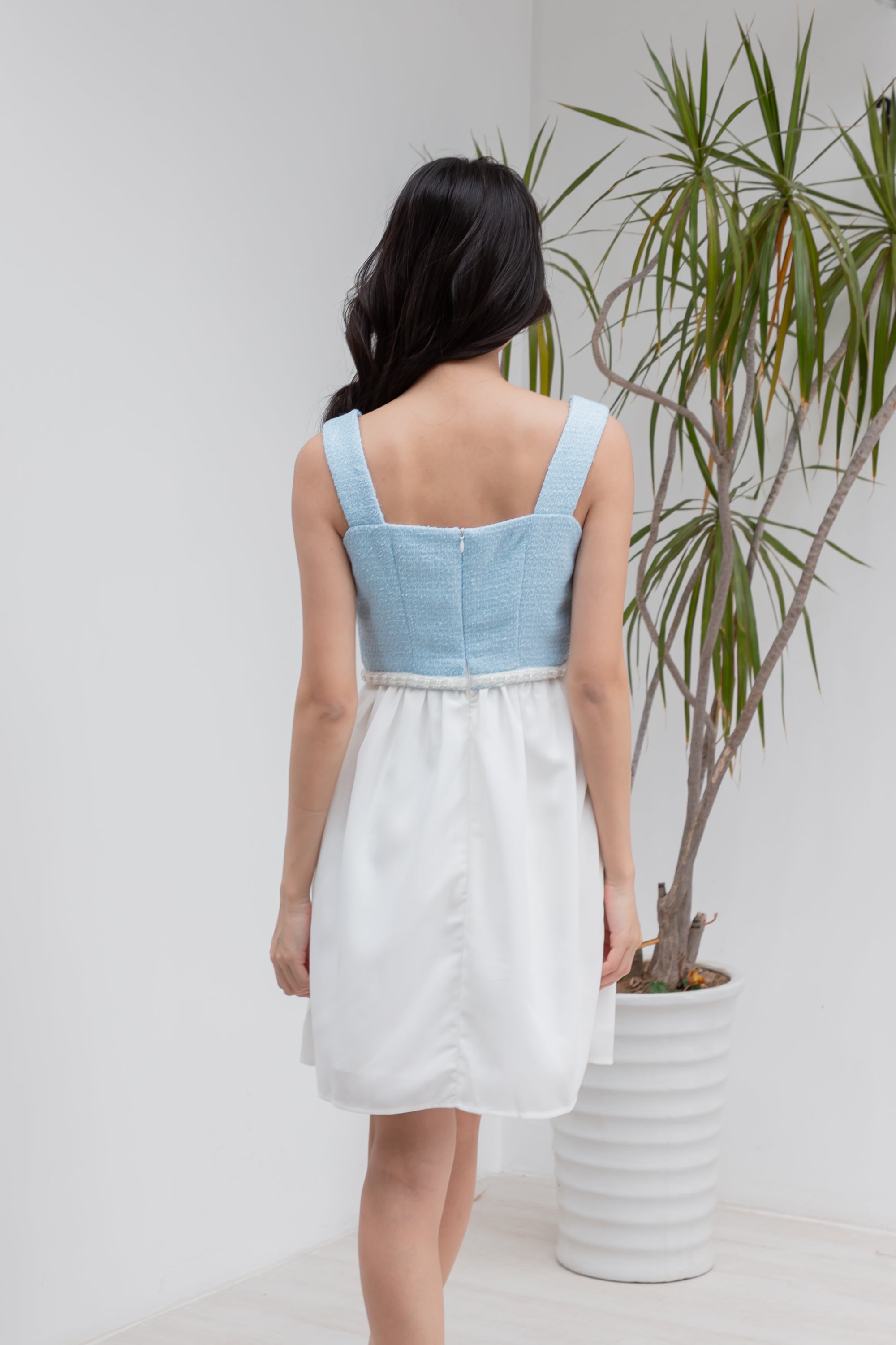 Anna blue and white tweed dress