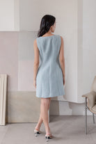 Fallon blue sleeveless tweed dress