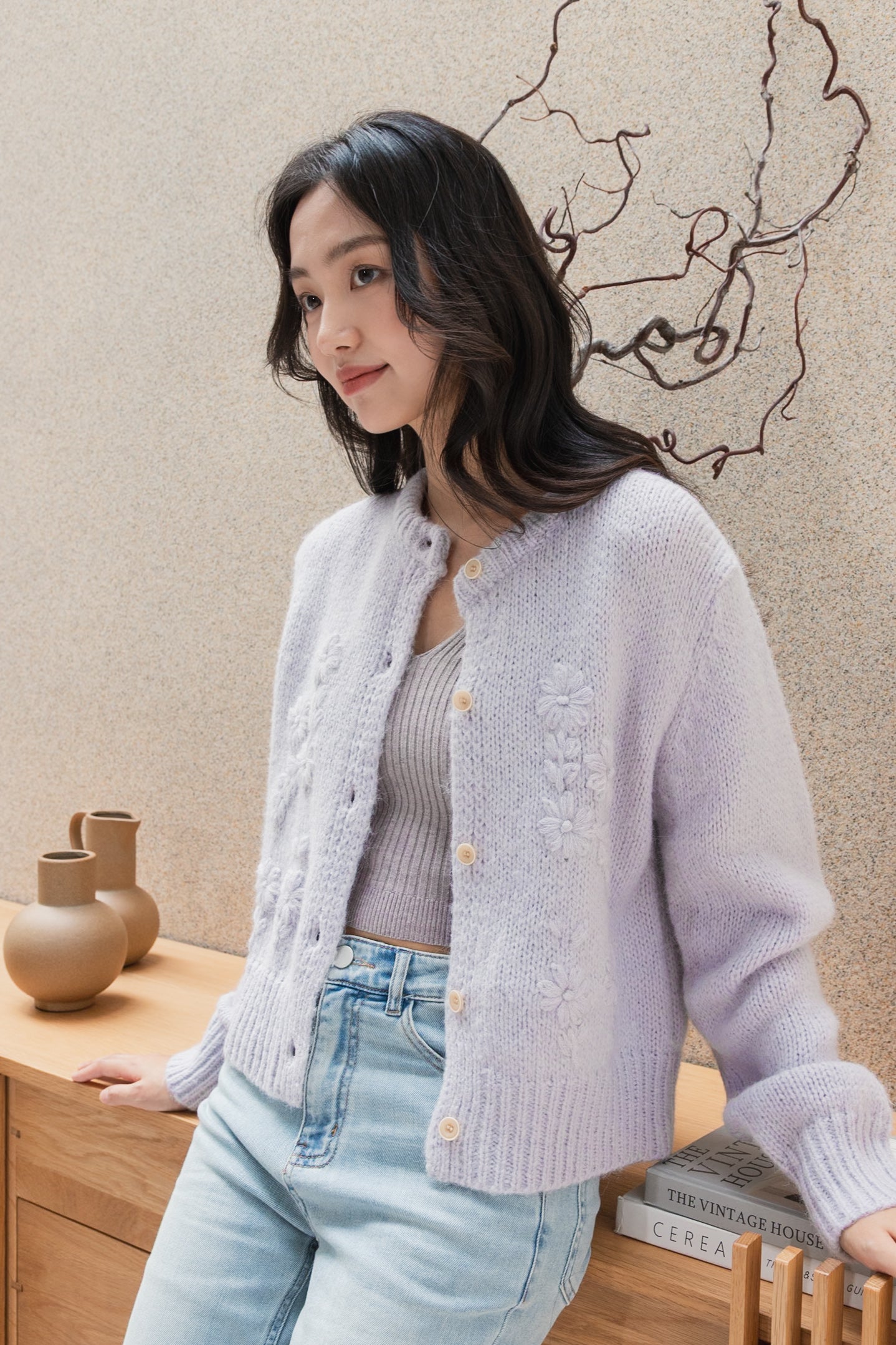 Fallon floral wool purple cardigan