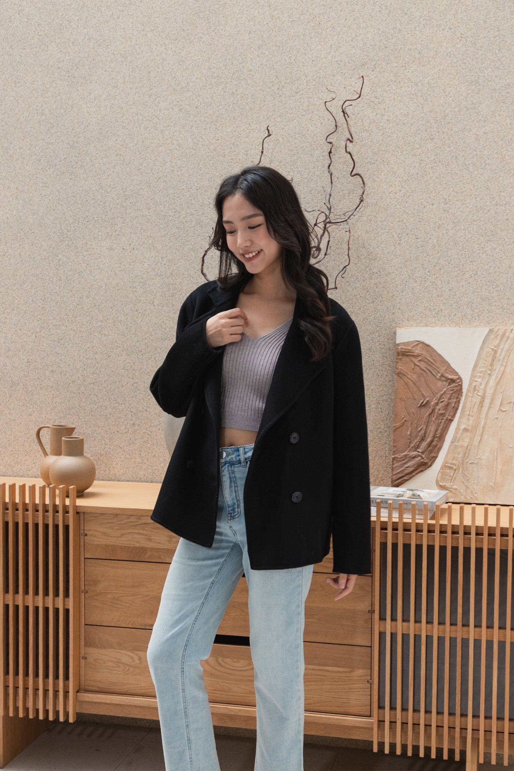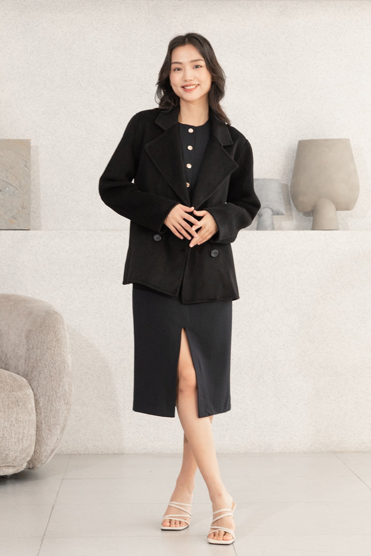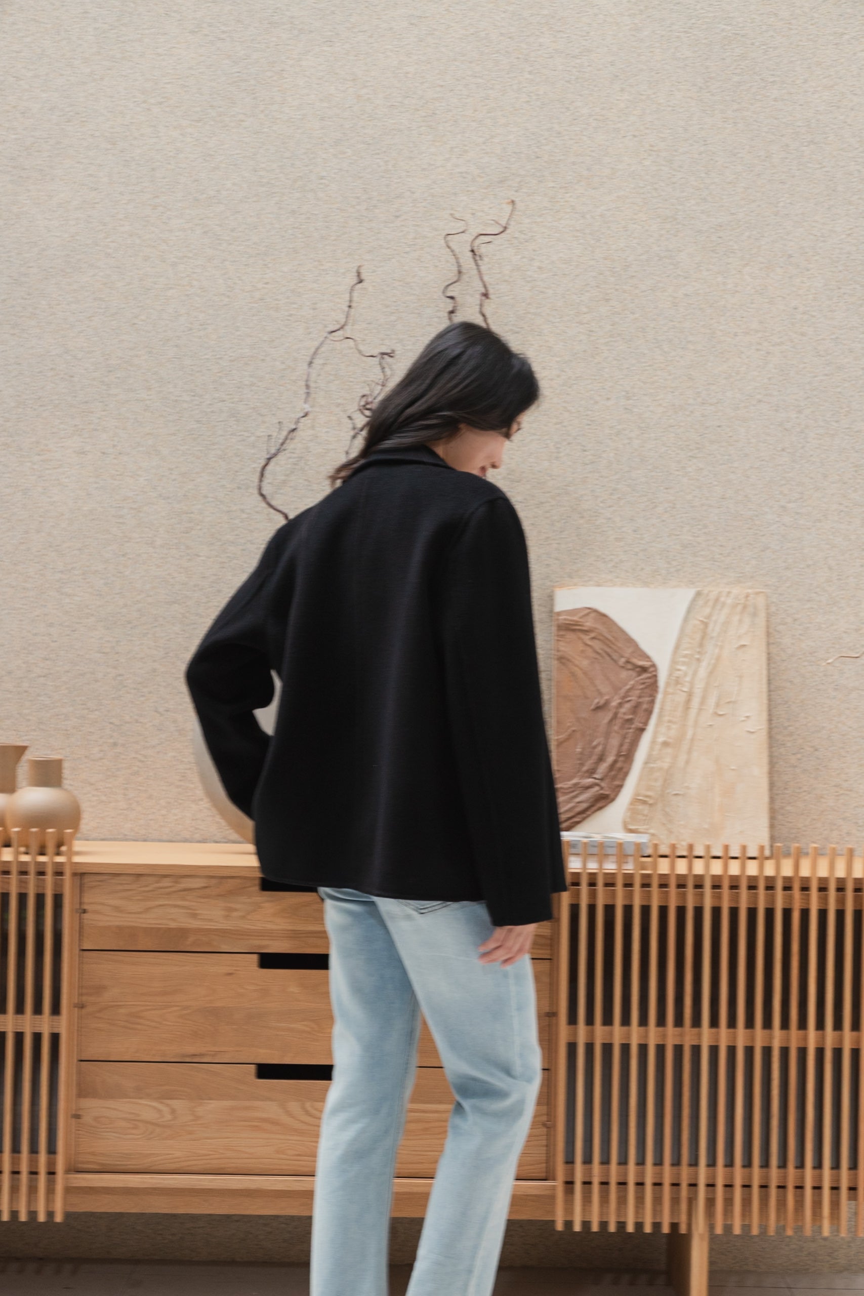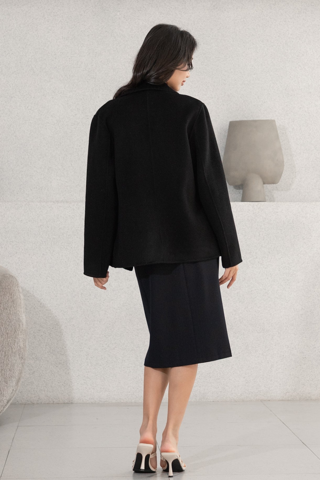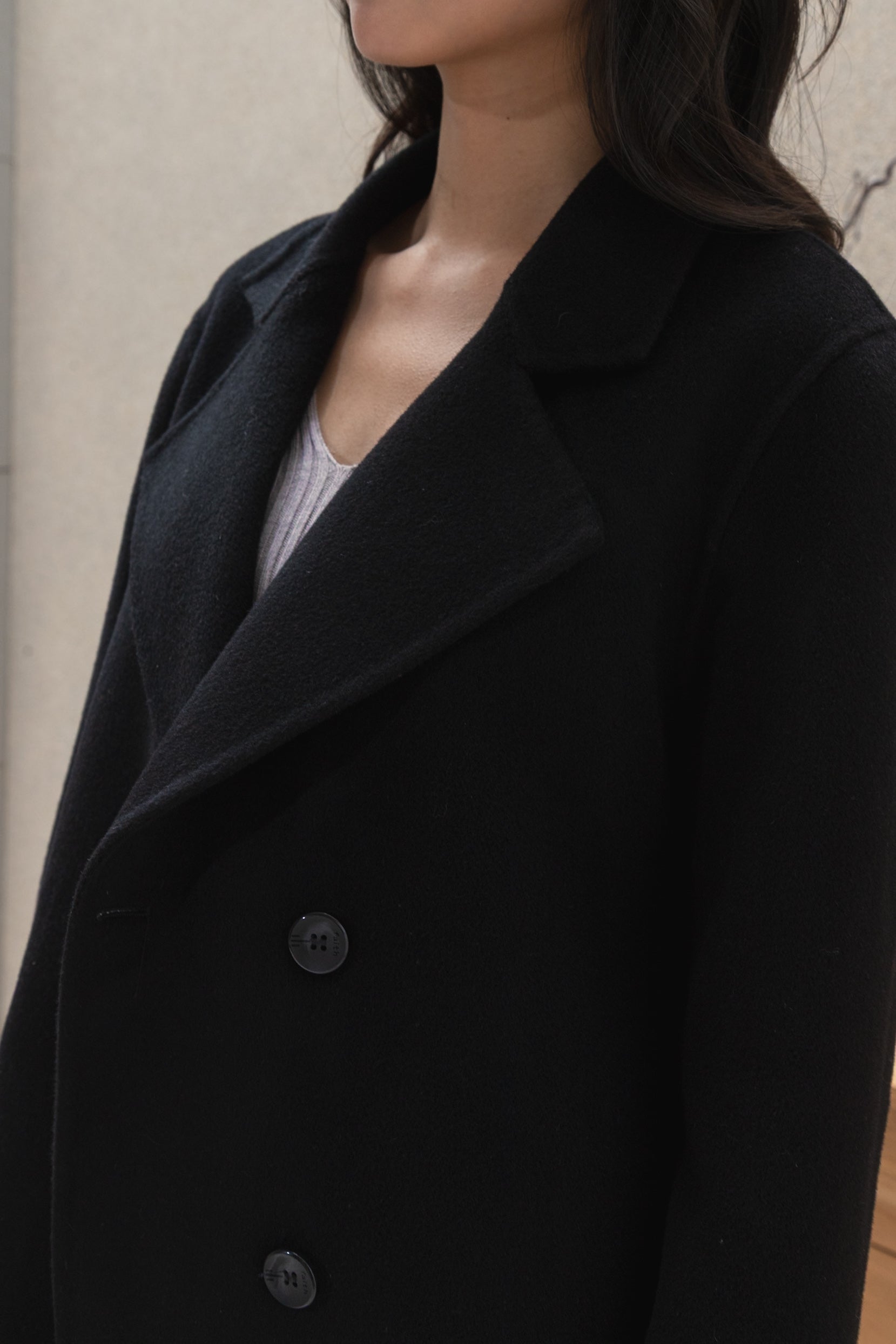Gavin drop shoulder black wool coat