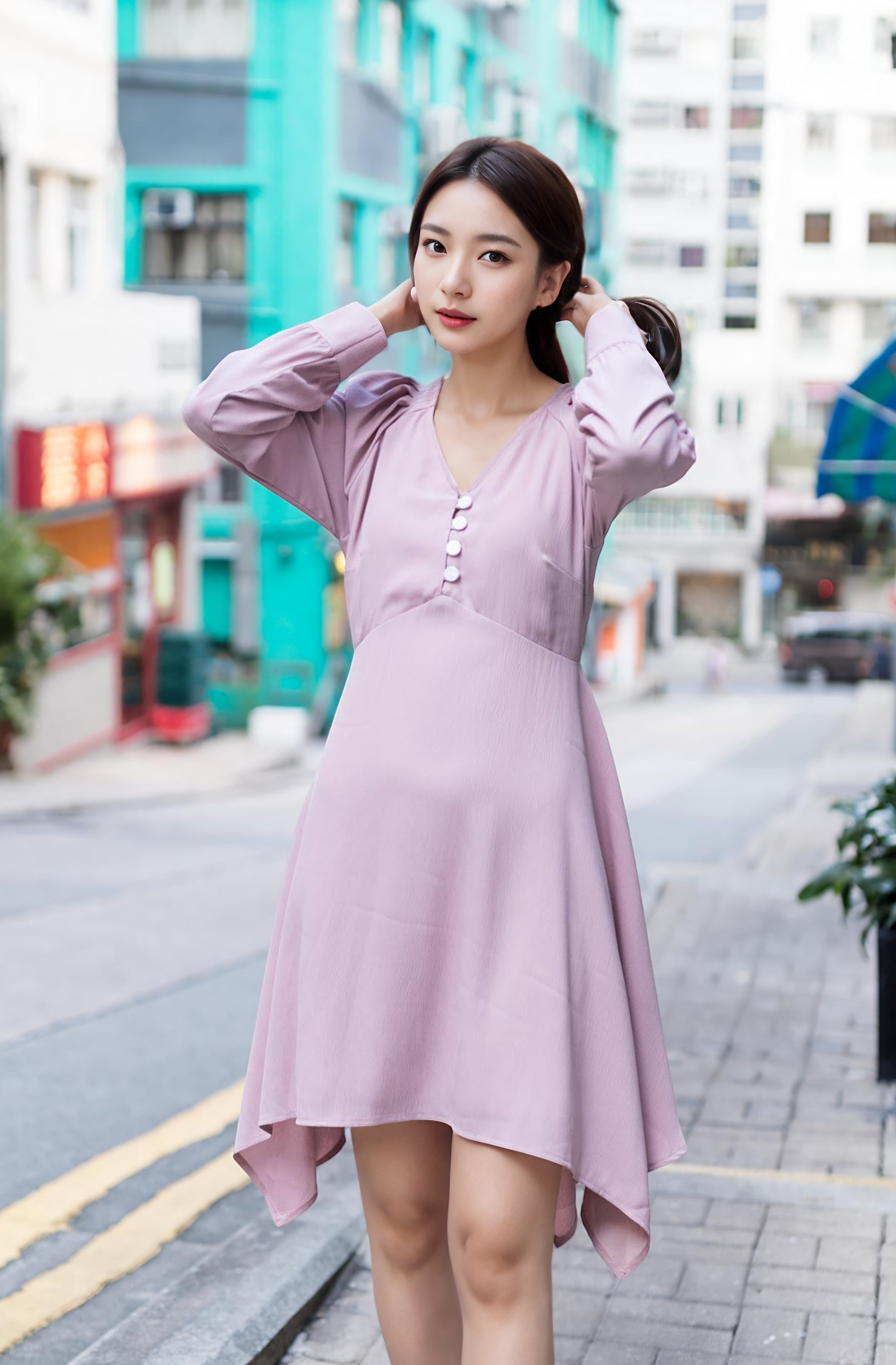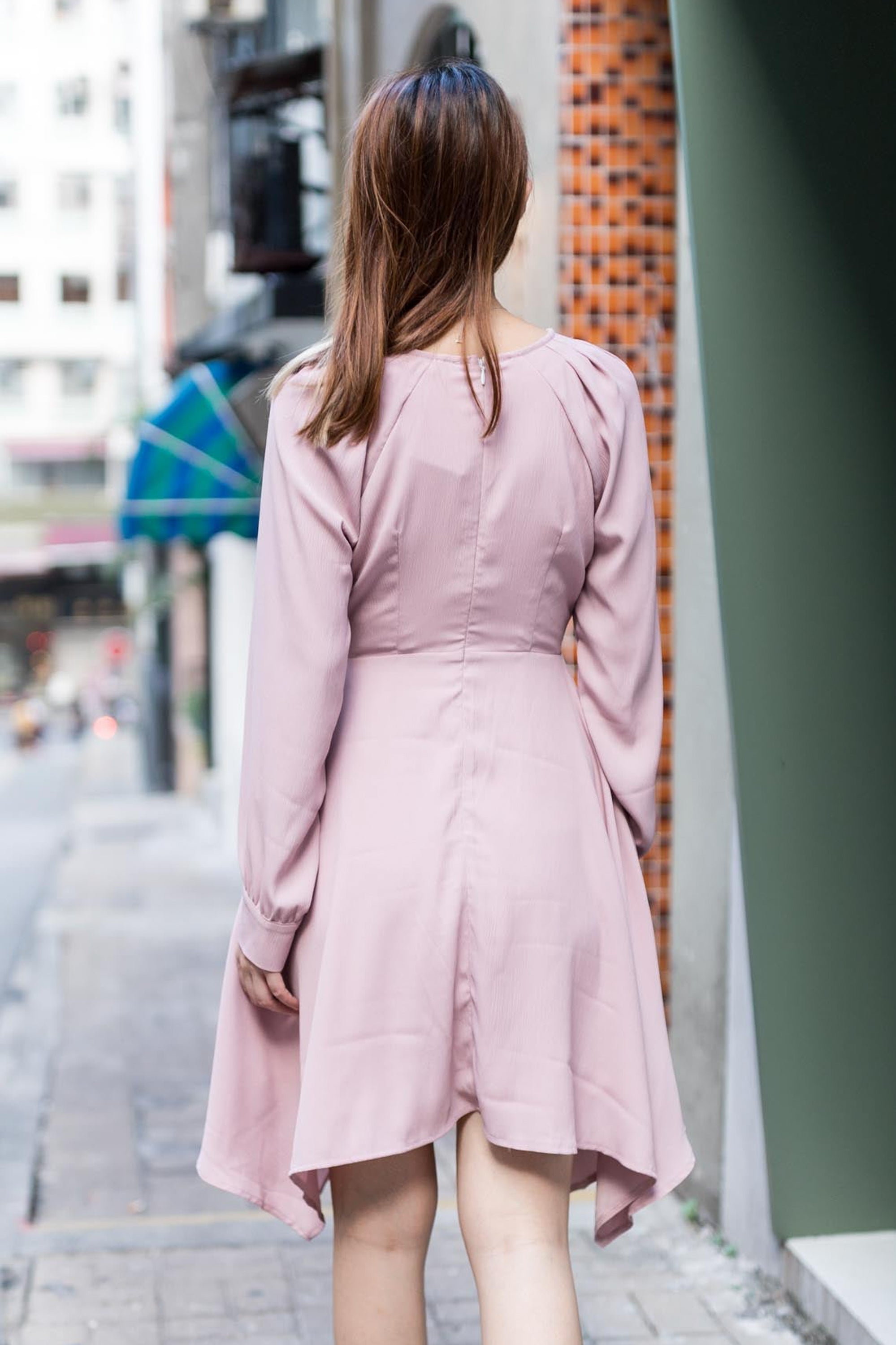 Arya twisted neckline mistyrose dress