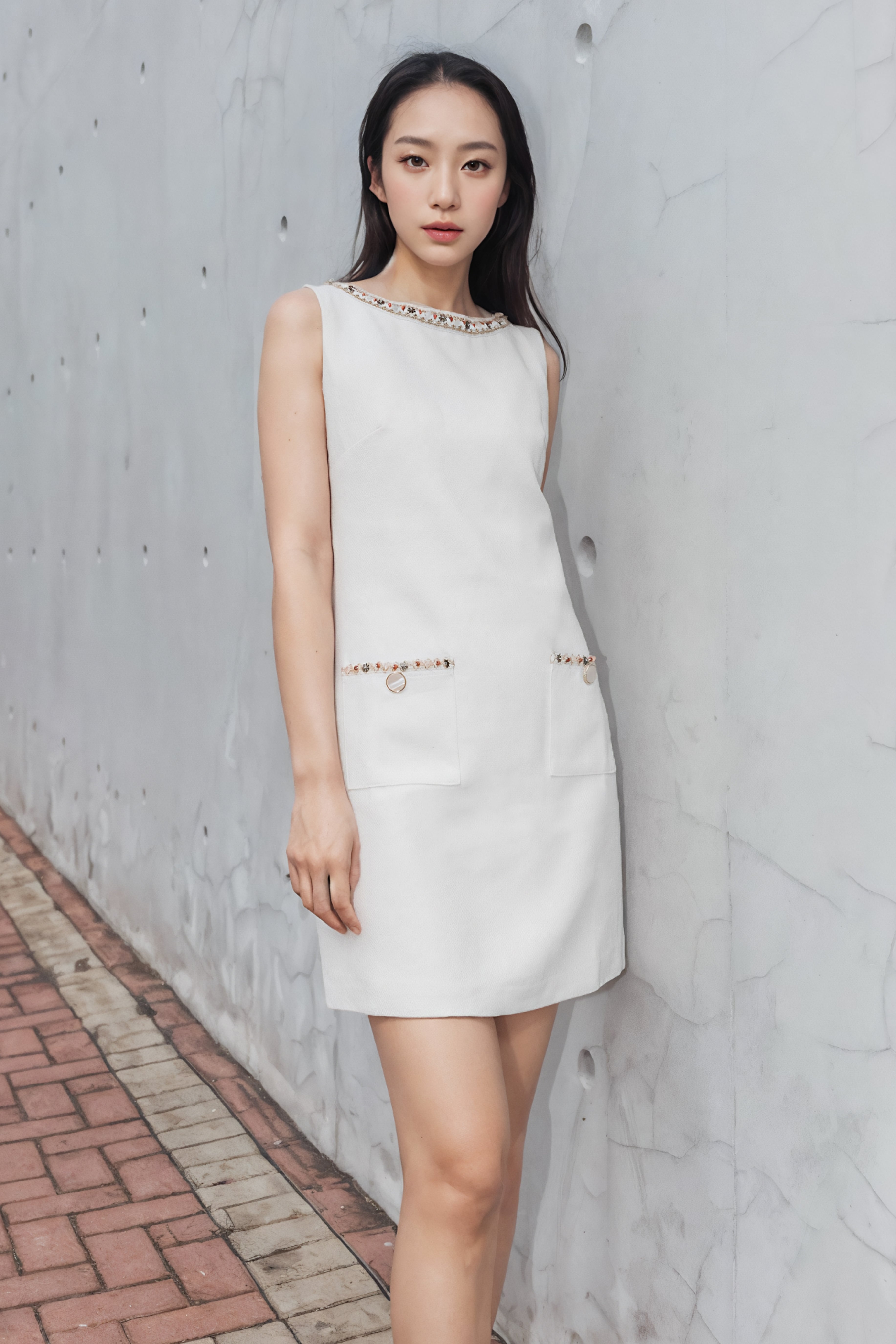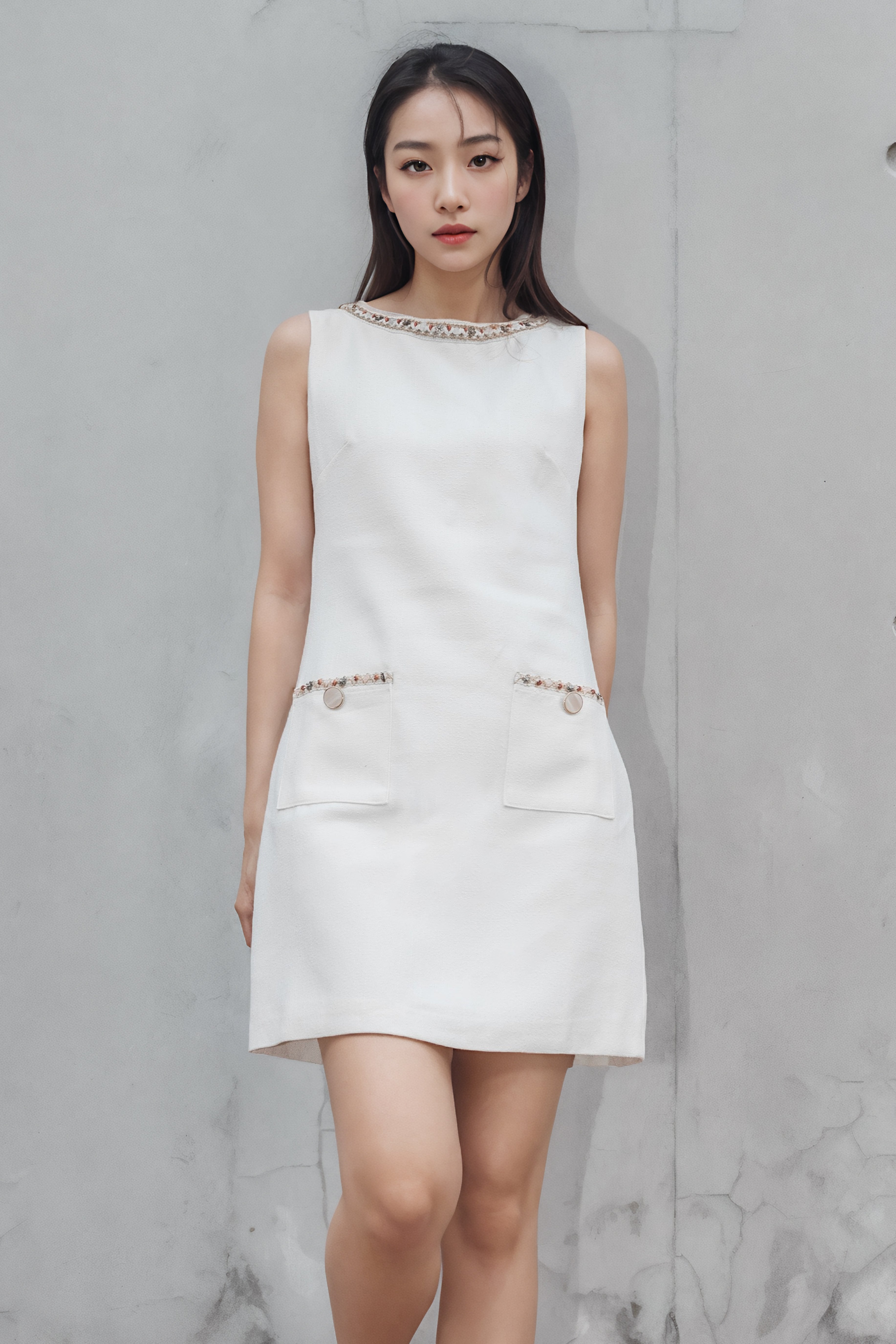 Celsa embroidered trimming tweed dress