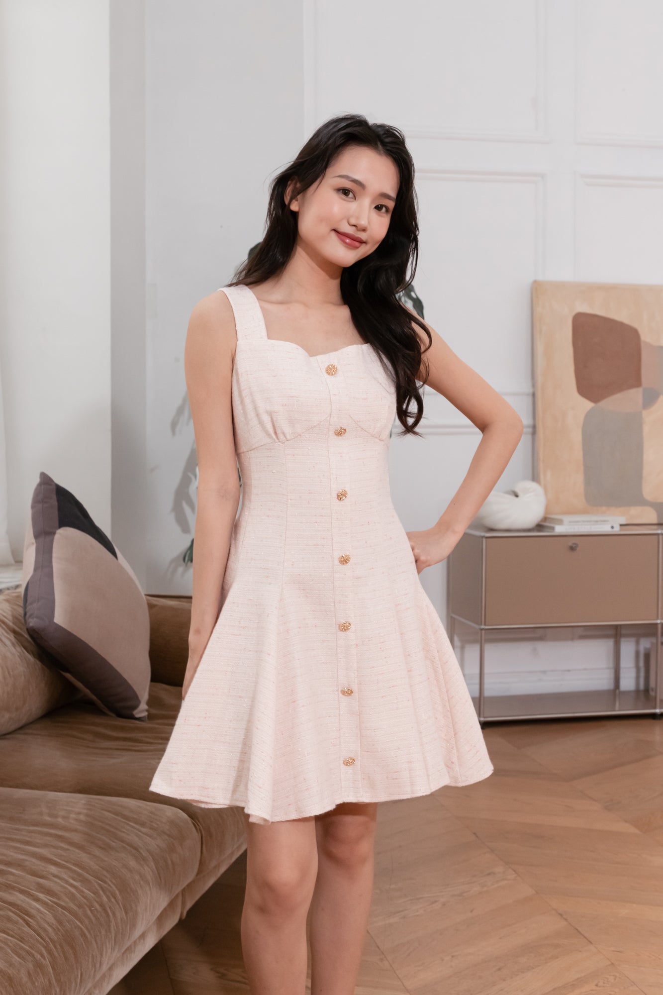 Cleo pink tweed dress