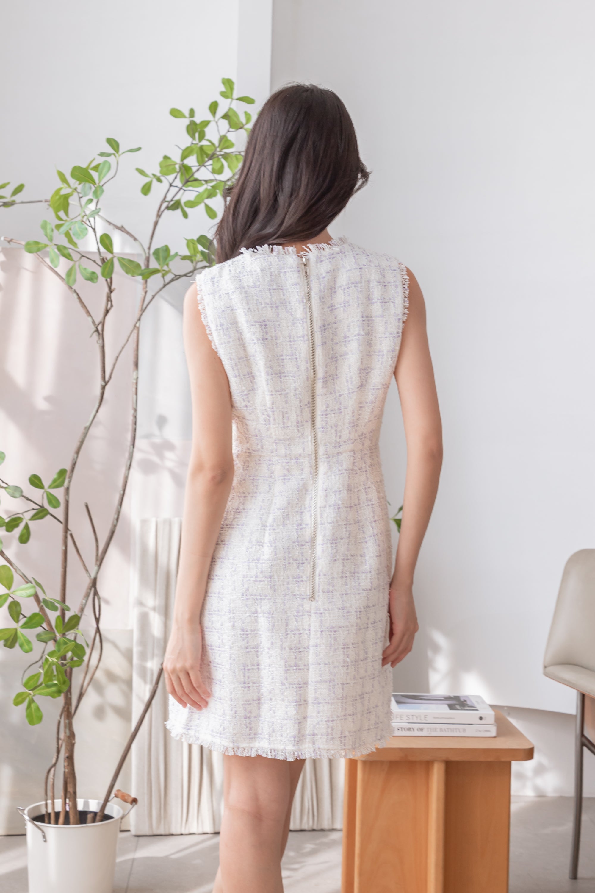 Daba purple check tweed dress